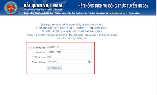 Bước 4: Click vào mục “Lấy thông tin”. Kết quả mã vạch hải quan được trả về