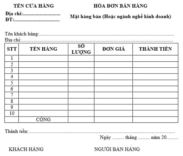 Tải mẫu hóa đơn bán lẻ theo định dạng
